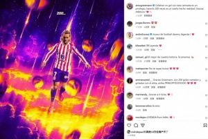 格列兹曼社媒纪念马竞生涯200球:身披这身球衣庆祝是一种荣幸